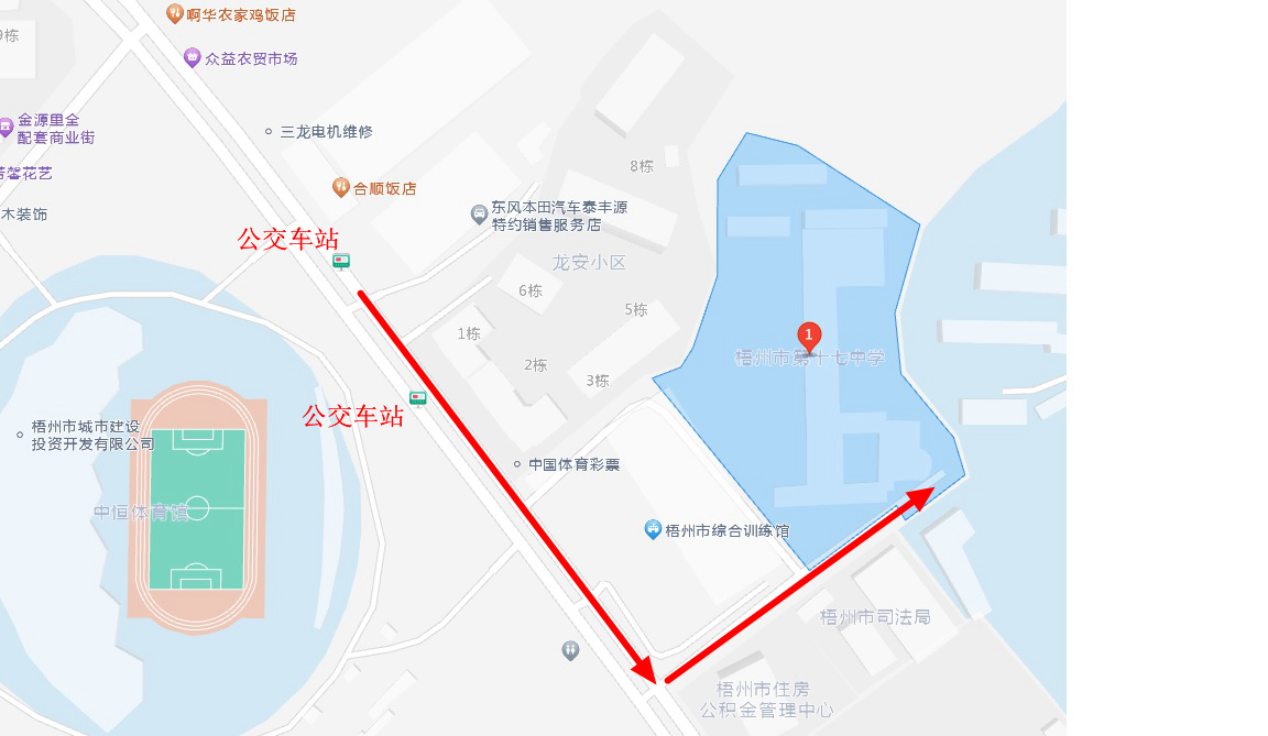公交車參考:10路、32路、49路、49路延長線、蒼梧城鄉(xiāng)6路。進入梧州學(xué)院校區(qū)統(tǒng)一在東大門進入,考點門口處于交通干道,送考車輛只能在東門外短暫停留,南門及其他門不得進入無法核驗考生身份。