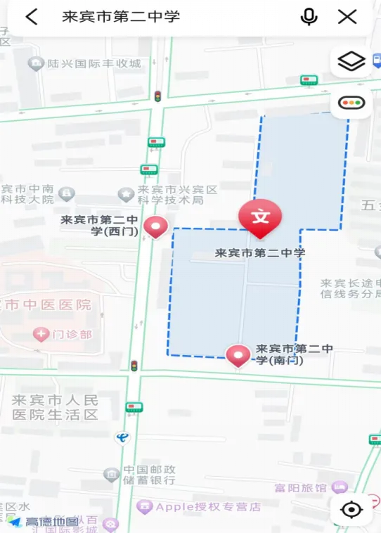 ▲來(lái)賓市第二中學(xué)交通指引圖(來(lái)賓市興賓區(qū)北四路62號(hào))。