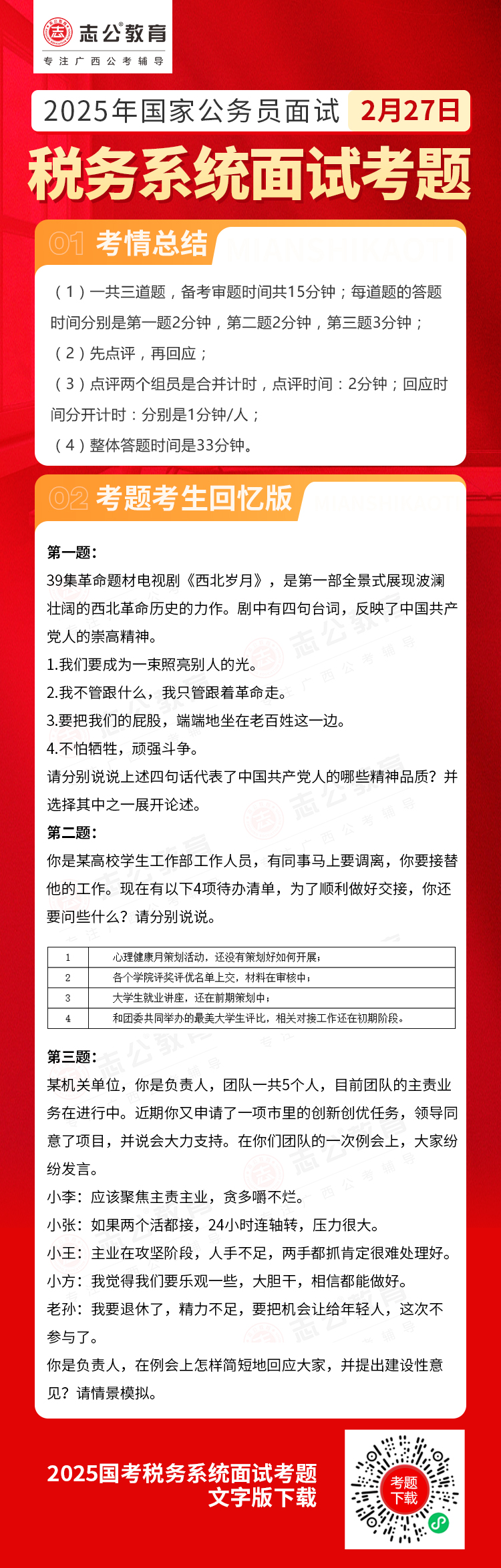 2025年2月27日國考稅務局面試考題(考生回憶版)