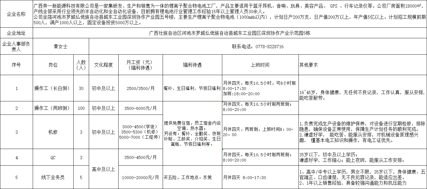 2025年4月廣西奔一新能源科技有限公司招聘141人