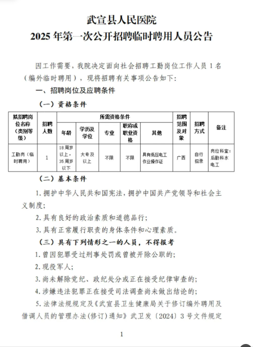 原文標(biāo)題:武宣縣人民醫(yī)院2025年第一次公開招聘臨時聘用人員公告