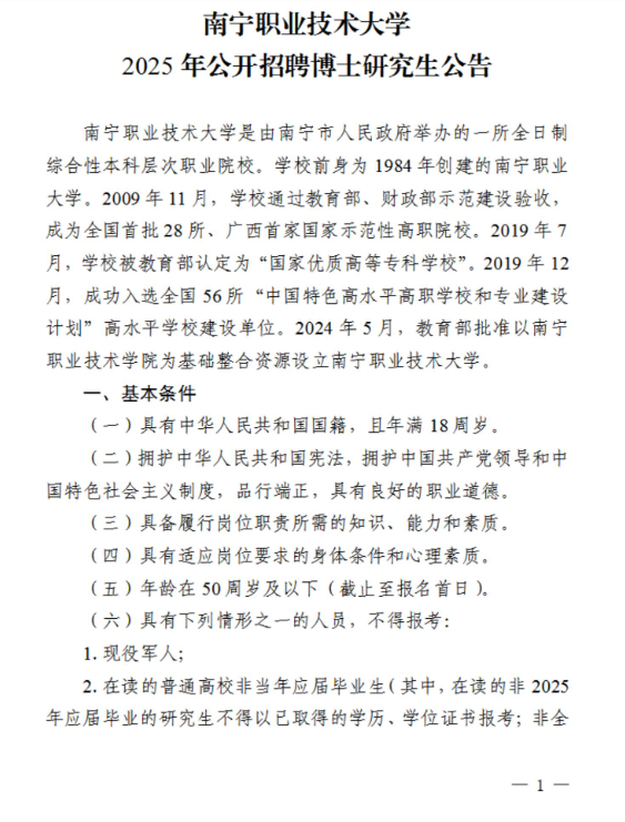2025年南寧職業(yè)技術(shù)大學(xué)公開(kāi)招聘博士研究生公告