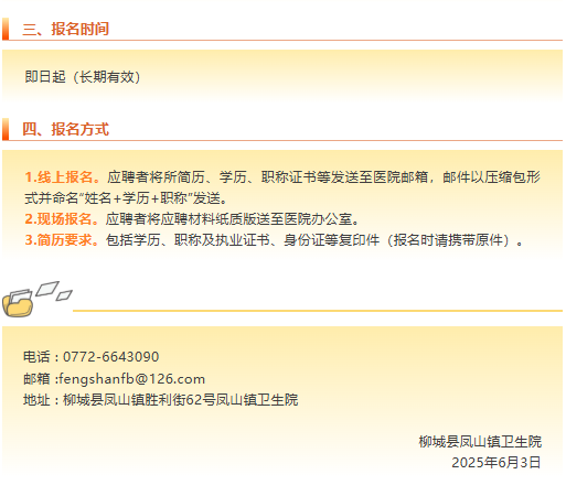 2025年廣西柳城縣鳳山鎮(zhèn)衛(wèi)生院臨床醫(yī)師招聘3人