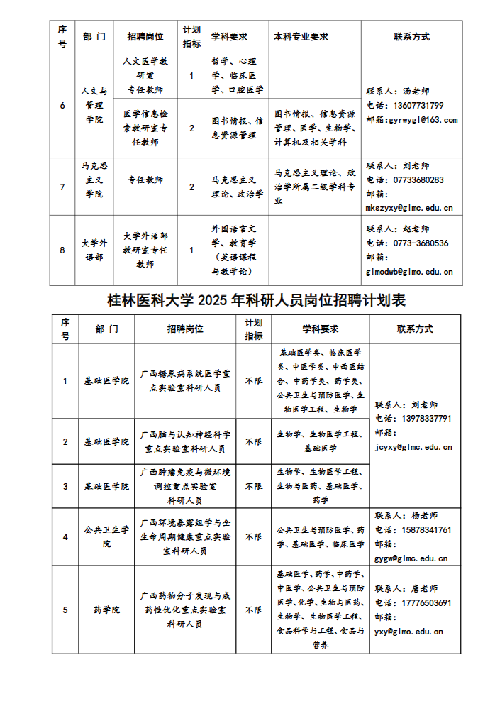 (二)各部門聯(lián)系方式見:桂林醫(yī)科大學(xué)各崗位招聘計(jì)劃表。