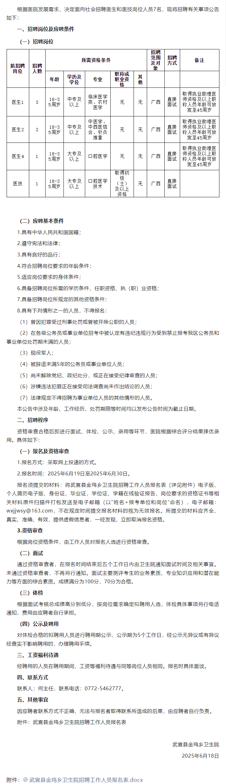2025年武宣縣金雞鄉(xiāng)衛(wèi)生院公開招聘編外聘用人員7人