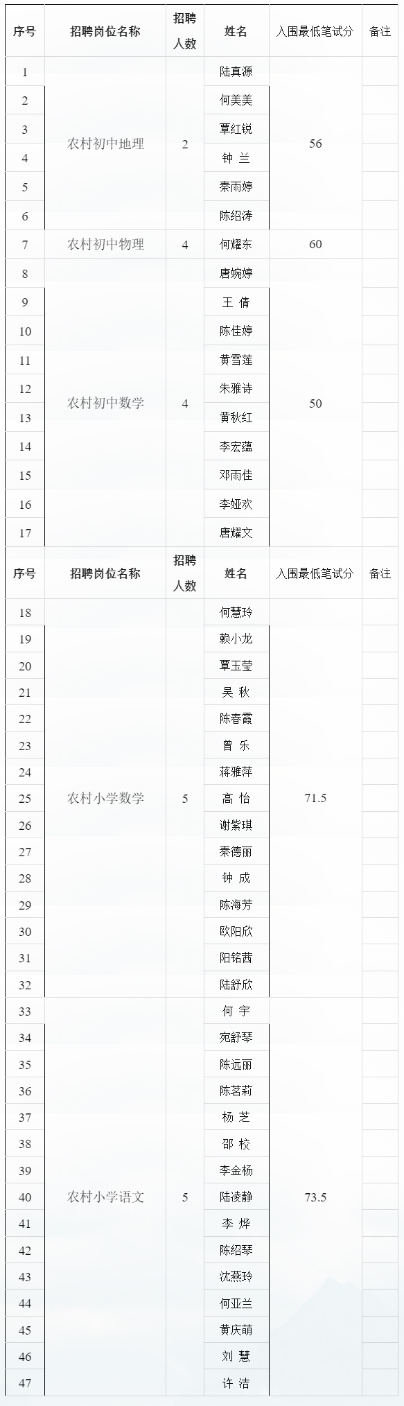 附件:1.恭城瑤族自治縣2025年中小學(xué)特崗教師招聘面試人員名單