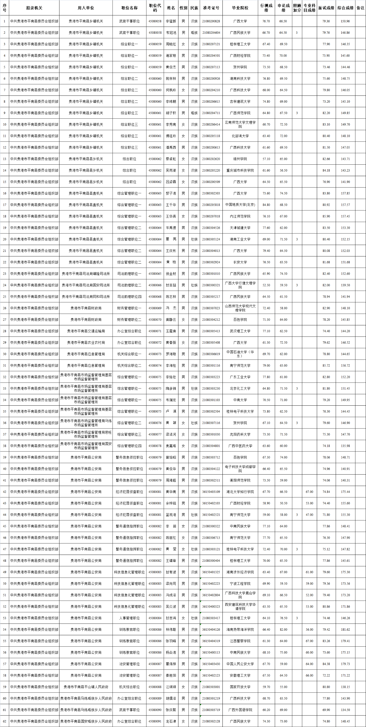 6.22 貴港市平南2025年度考試錄用公務(wù)員擬錄用人員名單(二)