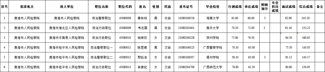 6.15 貴港人民檢察院2025年度考試錄用公務(wù)員擬錄用人員名單