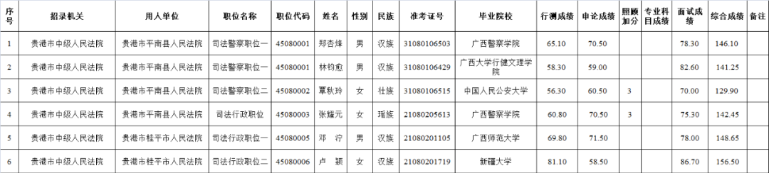 6.6 貴港中級人民法院2025年度考試錄用公務(wù)員擬錄用人員名單