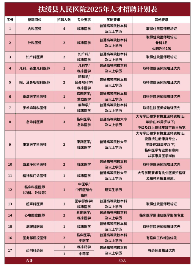 扶綏縣人民醫(yī)院2025年人才招聘計(jì)劃