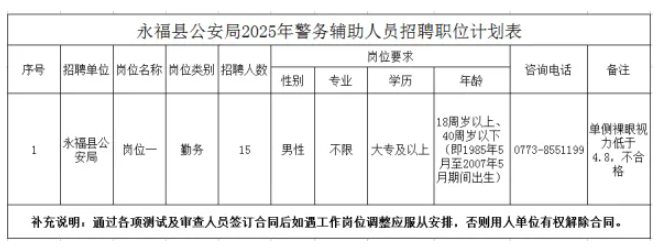 1、永福縣公安局輔警招聘表(見附件1);