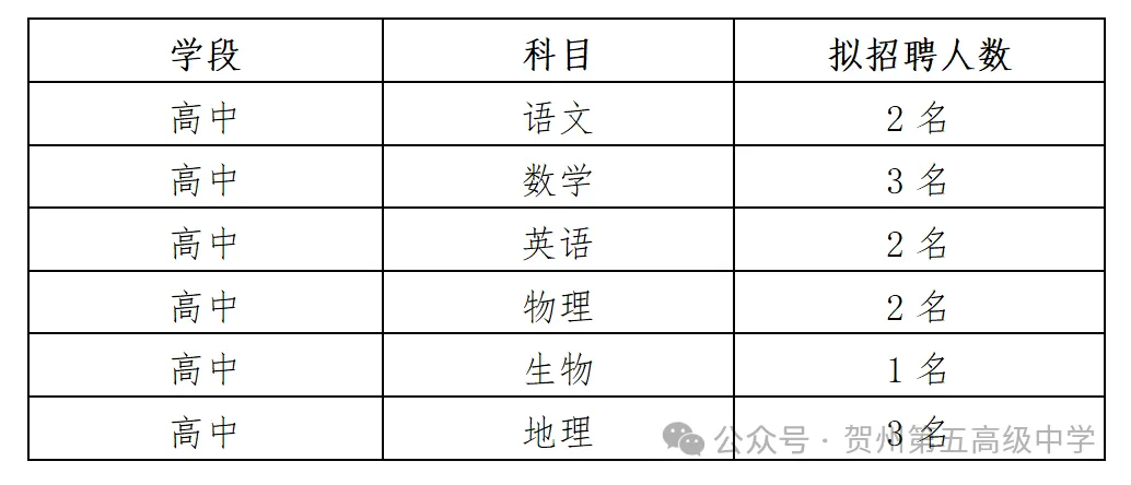 原文標題:賀州第五高級中學2025年秋季學期招聘教師公告