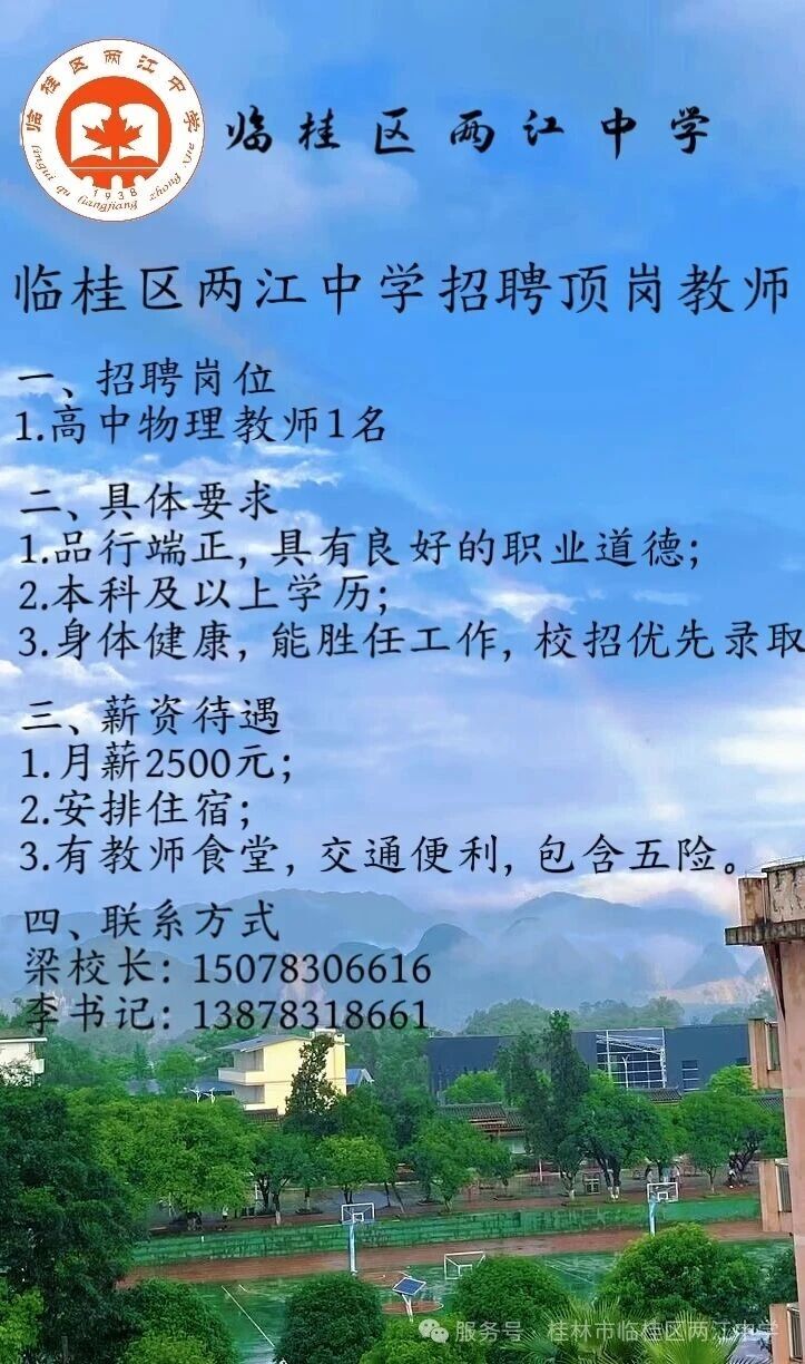 2025年桂林臨桂區(qū)兩江中學(xué)招聘頂崗老師1人