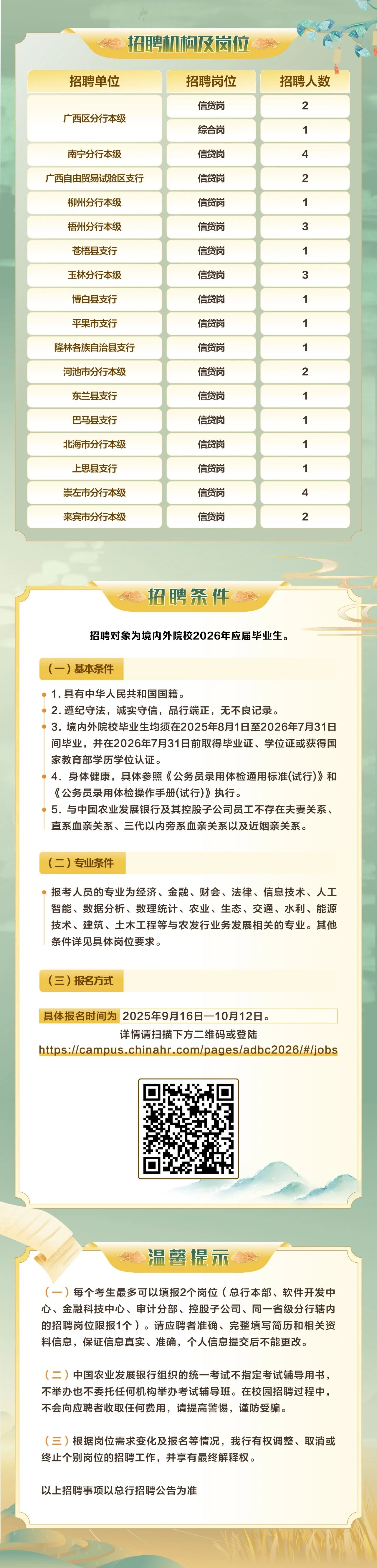 中國農(nóng)業(yè)發(fā)展銀行廣西區(qū)分行2026年校園招聘正式啟動