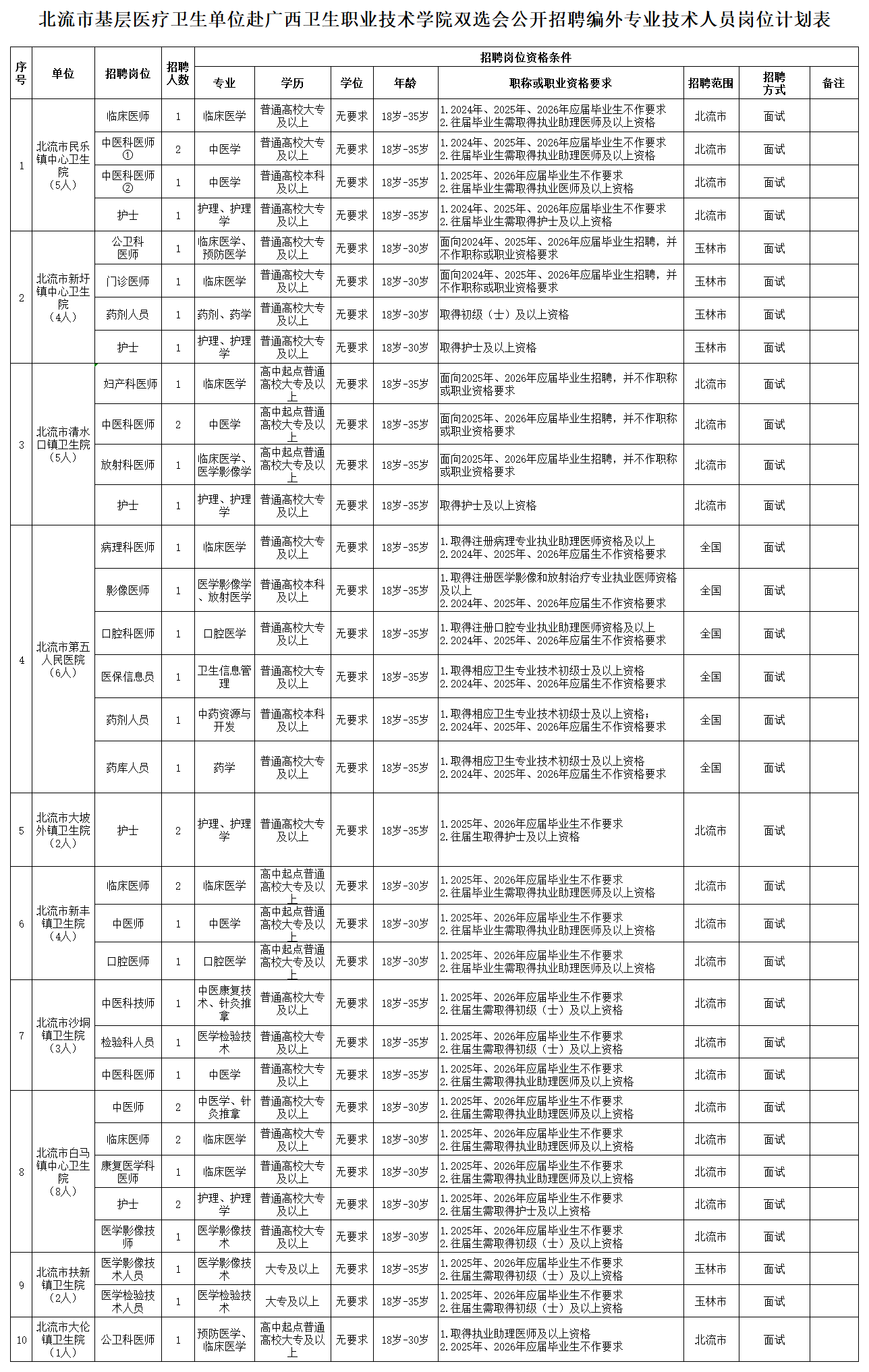 附件:1.北流市基層醫(yī)療衛(wèi)生單位赴廣西衛(wèi)生職業(yè)技術(shù)學(xué)院雙選會(huì)公開招聘編外專業(yè)技術(shù)人員崗位計(jì)劃表