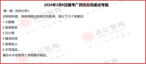 國(guó)考面試?yán)?,稅?wù)系統(tǒng)的題目一直有個(gè)很明顯的特點(diǎn),就是緊跟國(guó)家政策、貼近實(shí)際工作。尤其是2024年廣西稅務(wù)局的面試題,把這個(gè)特點(diǎn)體現(xiàn)得特別透徹。看這些題目,既能知道稅務(wù)工作實(shí)際需要什么樣的人、做什么樣的事,也能清楚面試到底要考察我們哪些核心能力。今天小志就帶大家了解一下,國(guó)考中稅務(wù)系統(tǒng)面試一些相關(guān)信息解讀: